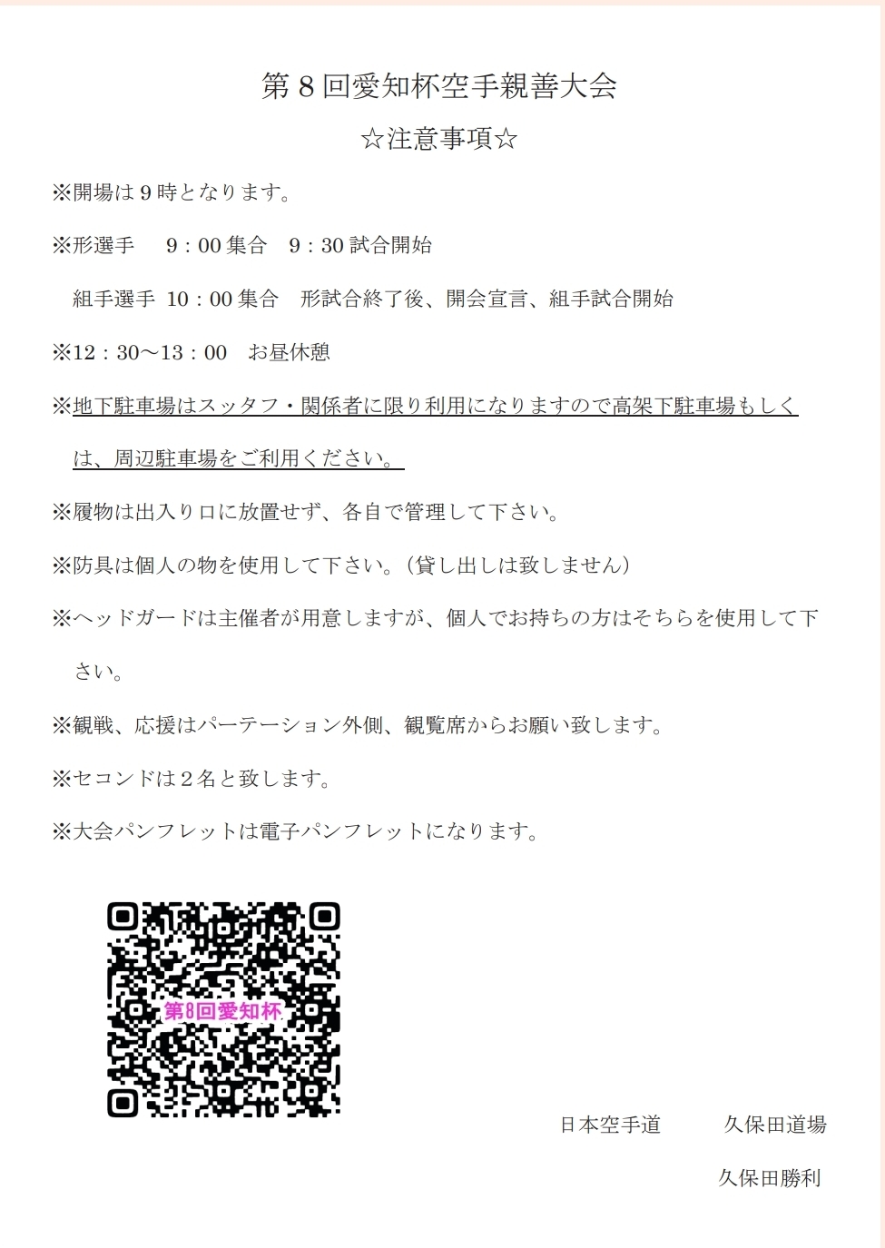 第8回愛知杯空手親善大会 注意事項